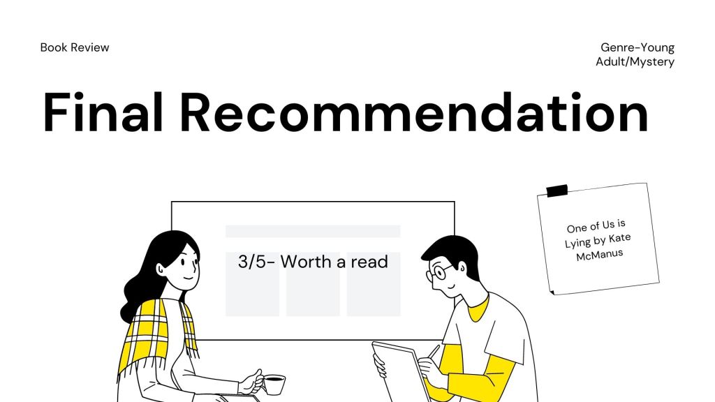 ‘The Breakfast Club meets Pretty Little Liars’ screamed a blurb. That got my attention. One of Us is Lying is a young adult, mystery novel published in 2017. If you have read it, you would know that it reflects traces of clichés at high school, young adult tropes, and the most popular yet conflicting show on Netflix, 13 Reasons Why.